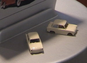 Wenn auch keine Rarität so doch interessant - Musterfahrzeug der Firma Lilliput zur Katalog- und Messe-Präsentation des H0-Waggons mit 2 311er Wartburg als Ladegut - die Serienfahrzeuge wurden lackiert, da die eigens hergsetllte Sonderserie der Fa. Brekina noch nicht lieferbar war